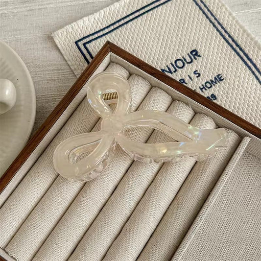 Bow Knot Pearlescent Claw Clip -Pearly White