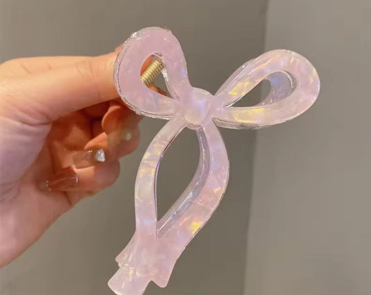 Bow Knot Pearlescent Claw Clip -Pearly Pink