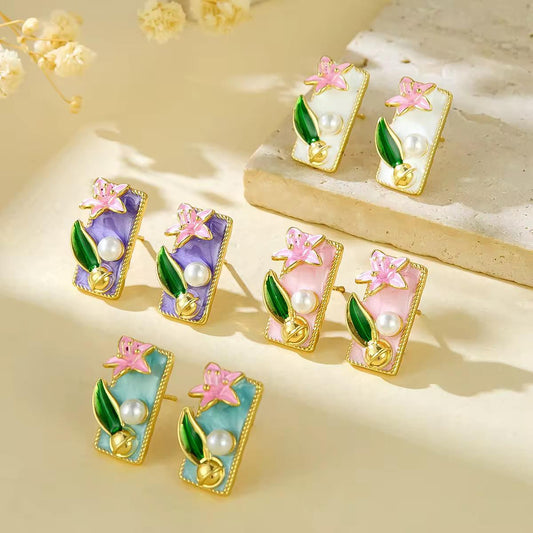Fairycore Lily Studs -Hand Painted