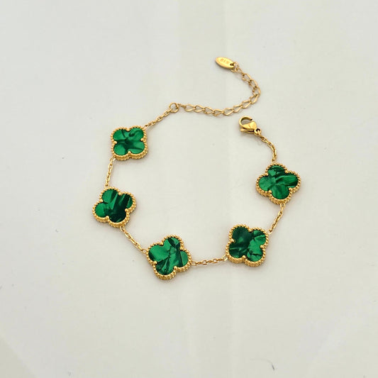 Luxurious Emerald Abstract Clover Bracelet -22K