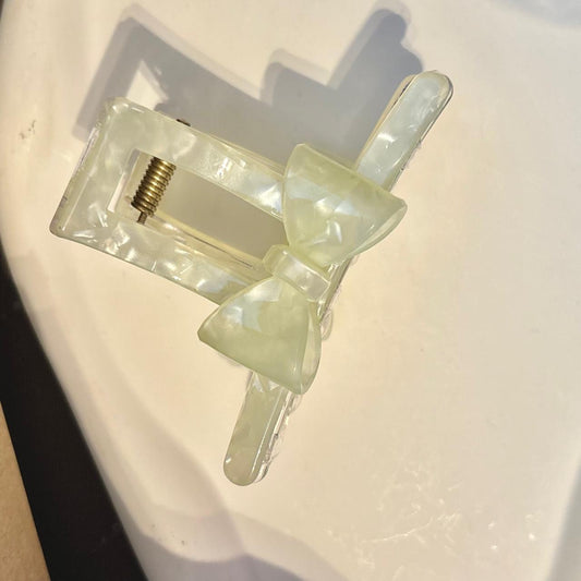Ivory Pearlescent Bow Claw Clip