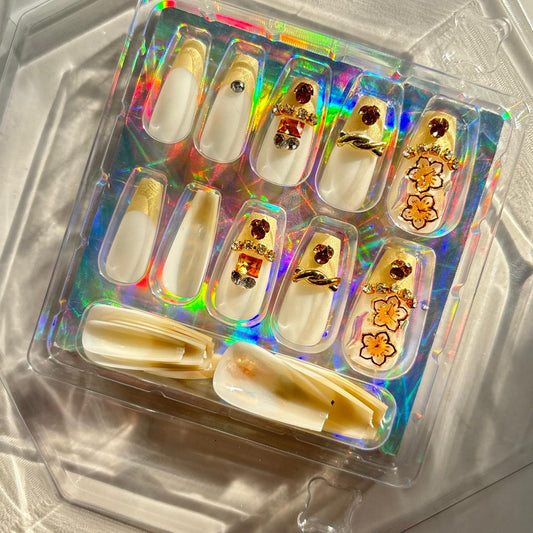 Gold French Tip Rhinestone Press On Nails