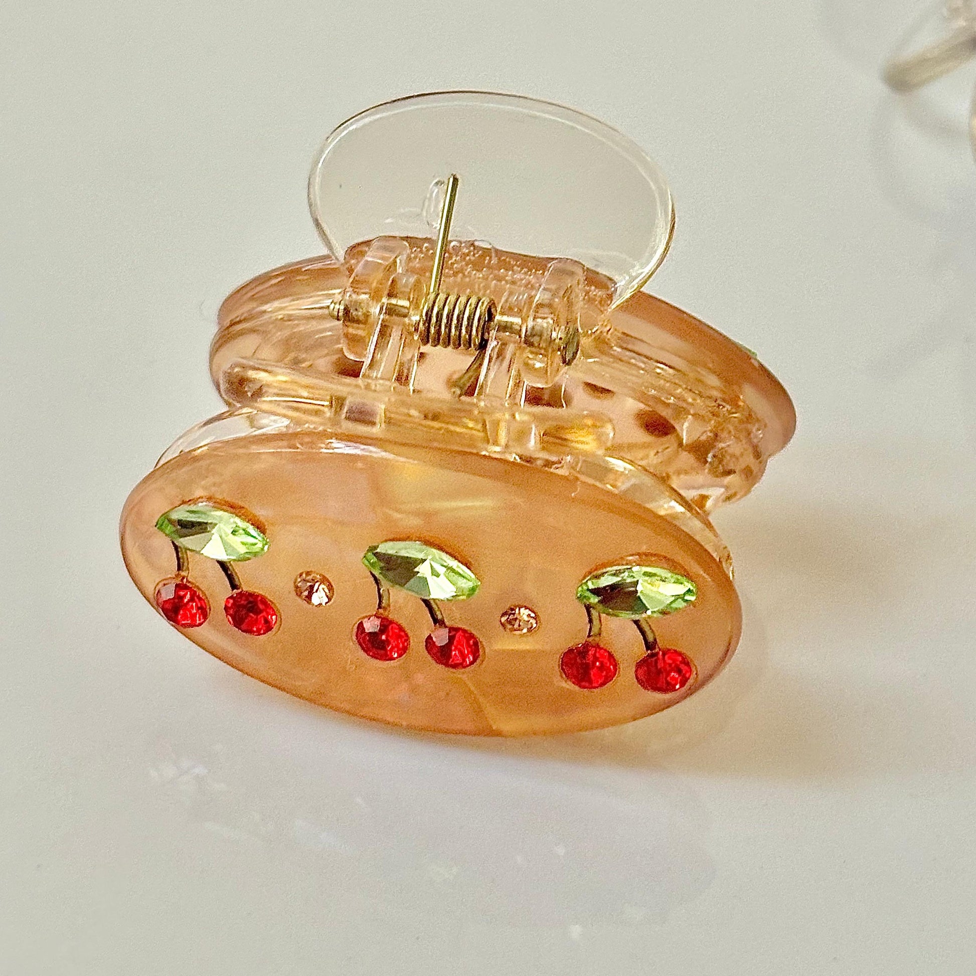 Caramel Brown With Cherrie Red Cz Claw Clip
