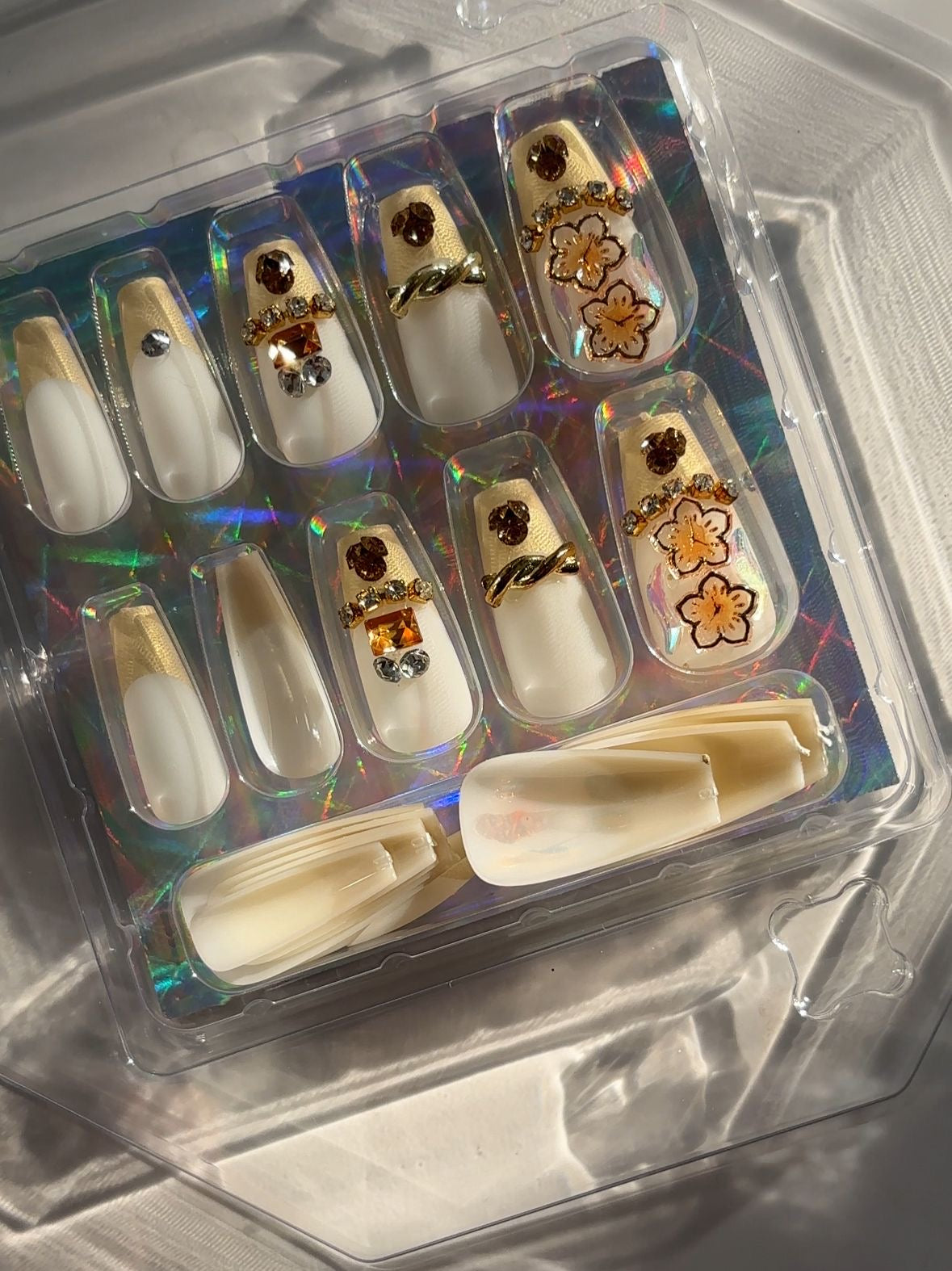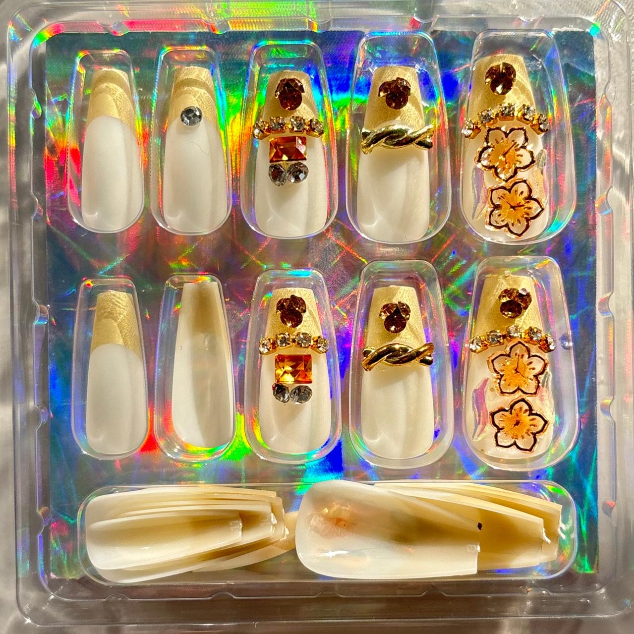 Gold French Tip Rhinestone Press On Nails